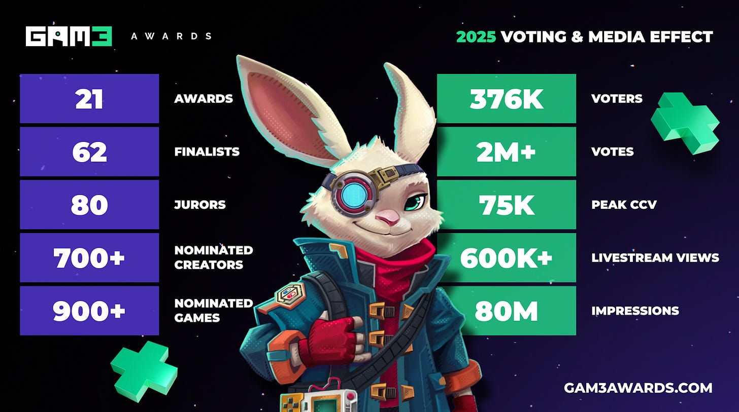 The GAM3 Awards continue to spotlight the growth of web3 gaming and reinforce the industry’s path toward mainstream adoption.